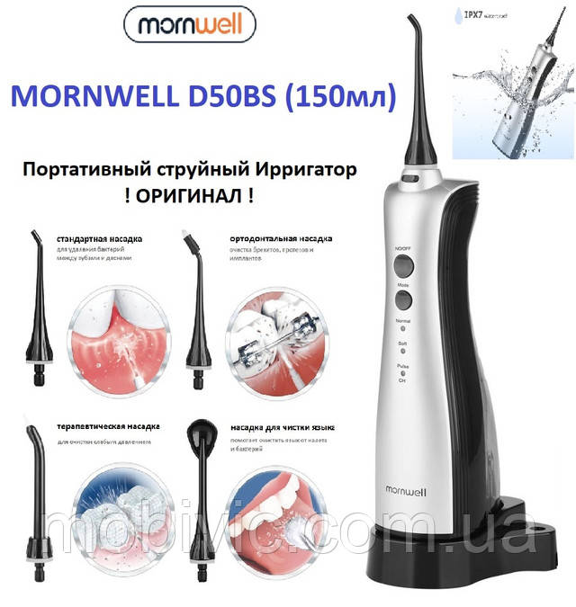 Водяна зубна нитка Mornwell D50BS може знищити наліт і бруд між зубами і під лінією ясен, для глибокого і ретельного очищення. Забезпечує простий і ефективний спосіб підтримувати здоров'я зубів і ясен в домашніх умовах. Це оральний іригатор також ідеально підходить для тих, у кого є брекети, імплантанти, коронки або пародонтальні кишені.