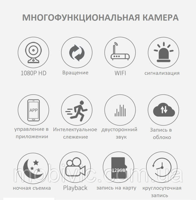 | Особливості | Кріплення в комплекті, Датчик руху, Запис звуку, нічна зйомка, Циклічна запис, Сигналізація, WiFi, Запис на хмару, Вологозахищений корпус, Пиловологозахищений корпус, Обертання в 4 сторони, LED-підсвічування, Інтелектуальне стеження |