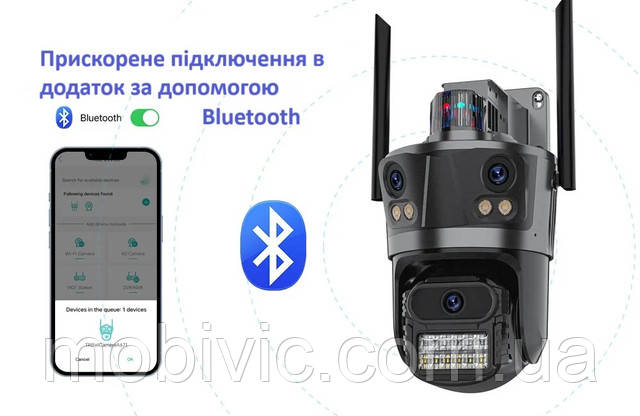 Wi-Fi камера BESDER XM77 — 9Мп, 3 об'єктиви, (віддалений перегляд), обертання,сигналізація — ORIGINAL