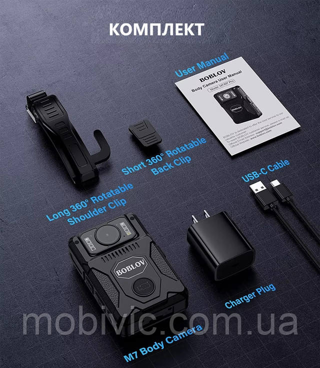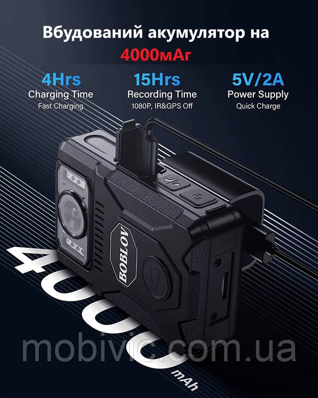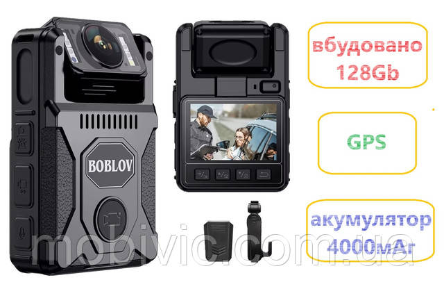 Нагрудна боді-камера Boblov M7 128Gb, датчик руху, нічне знімання, акум-4000мА·год — ОРИГІНАЛ!